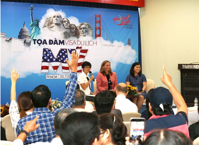Tọa đàm Hỏi viên chức lãnh sự Mỹ về cách sắp xếp hồ sơ phỏng vấn thu hút nhiều quan tâm của công chúng - Ảnh: Đào Ngọc Thạch